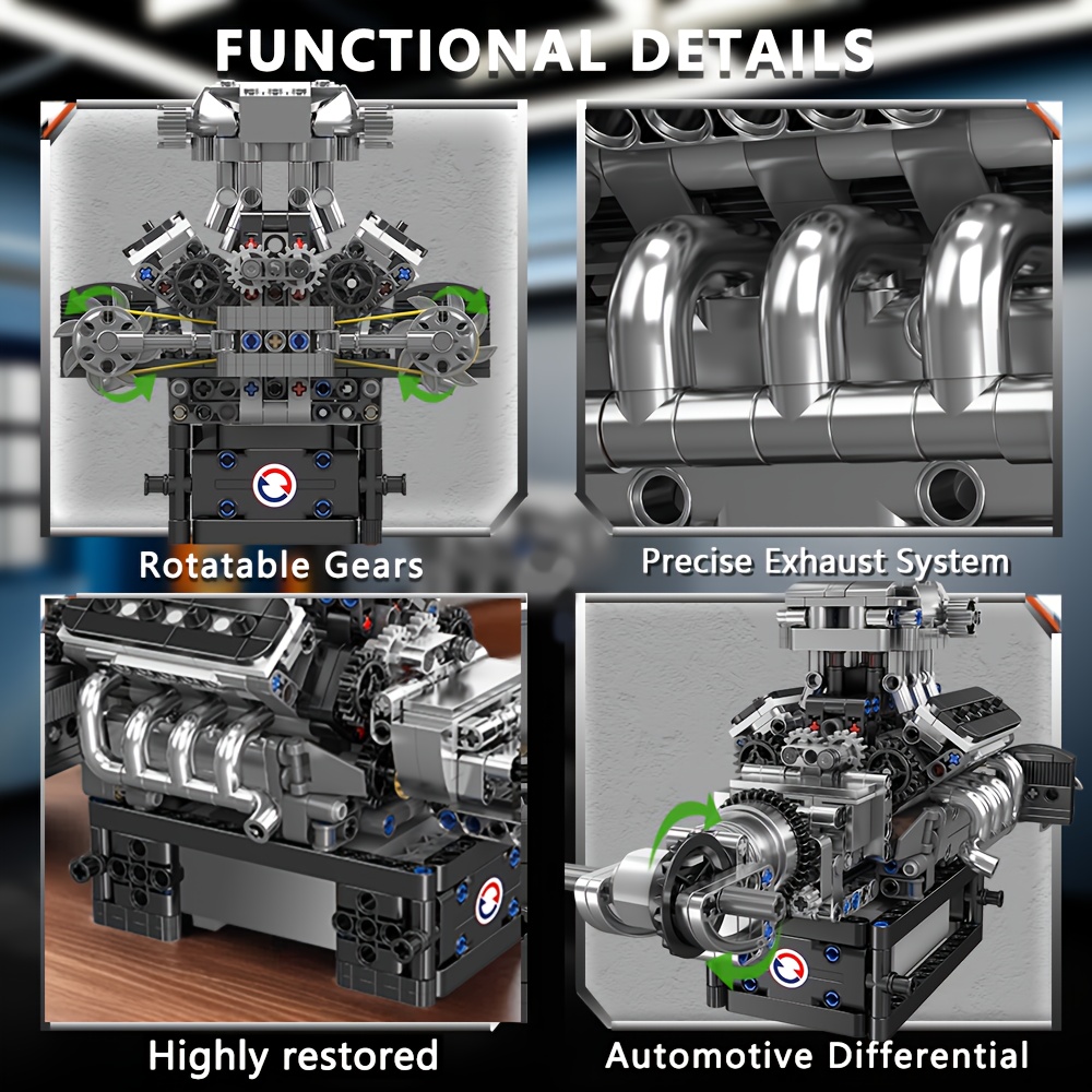 Modle kits737pcs MCL V8 Engine Assembly Model For Adults, 1:1 Scaled Engine Model, Sportscaru002FSupercar Engine Model, Electrically Driven, Rotational Gears, Ideal Model Collectibles For Supercaru002FMechanical Engineering Enthusiasts & Hobbyist, Homeu002Foffice Decor And Display, Easter Gifts, Easter Home Decor, Birthdayu002FHoliday Gifts