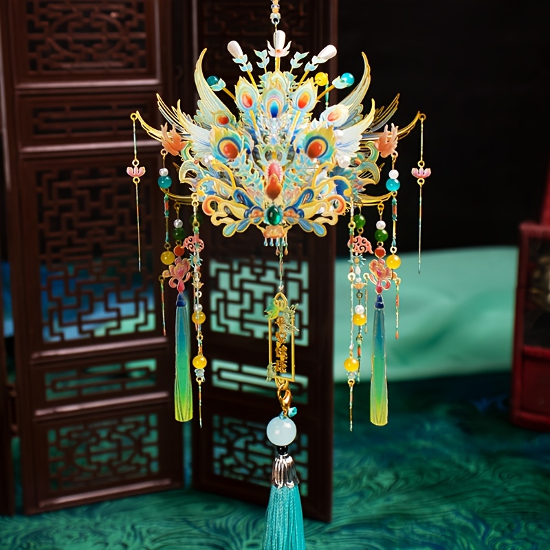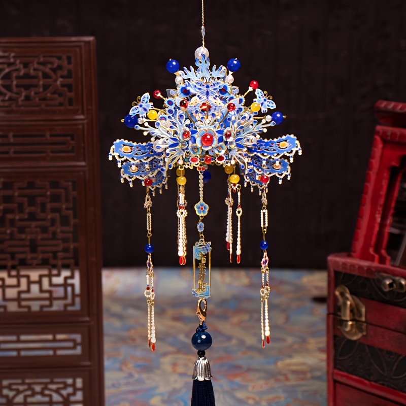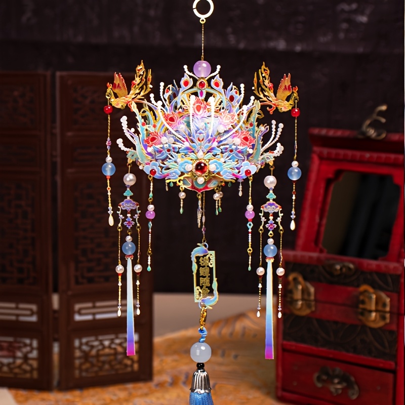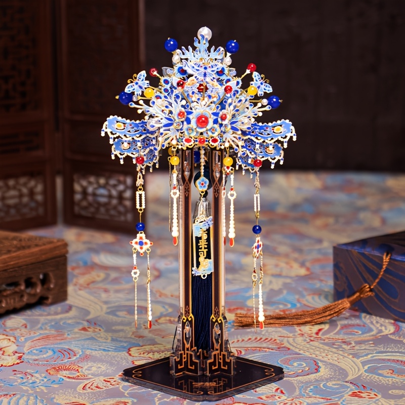 Elegant MU Small Phoenix Crown 3D Metal Puzzle – Vibrant Blue & Golden, Intricate Design with Beads & Tassels – Ideal Birthday or Christmas Gift for Boyfriend or Girlfriend