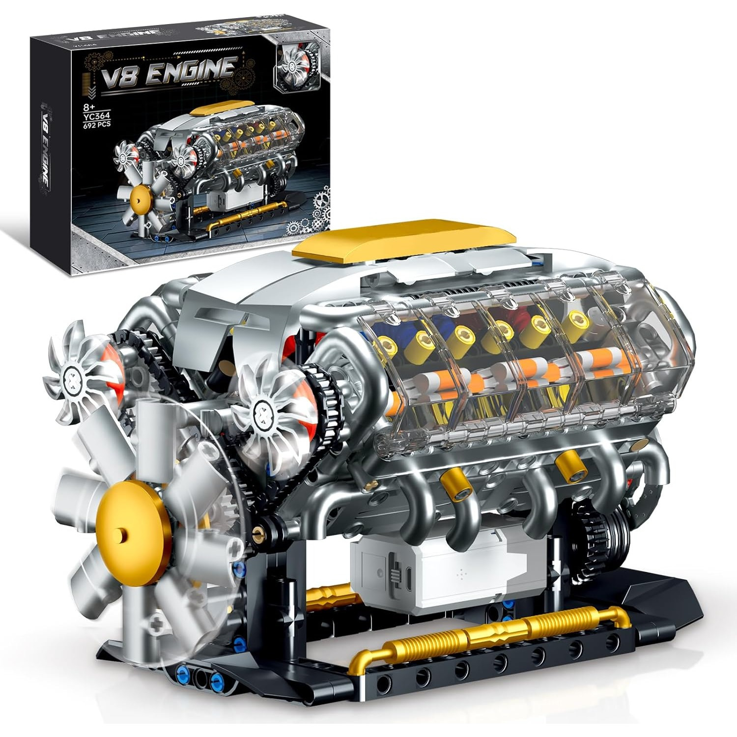 Ideas V8 engine building block toys, tabletop display models, build your own MOC mini V8 engine model toys 692pcs, Creative Play, Diy Project, Miniature Replica, Precision Pieces, Model Enthusiasts, Hobby Builders