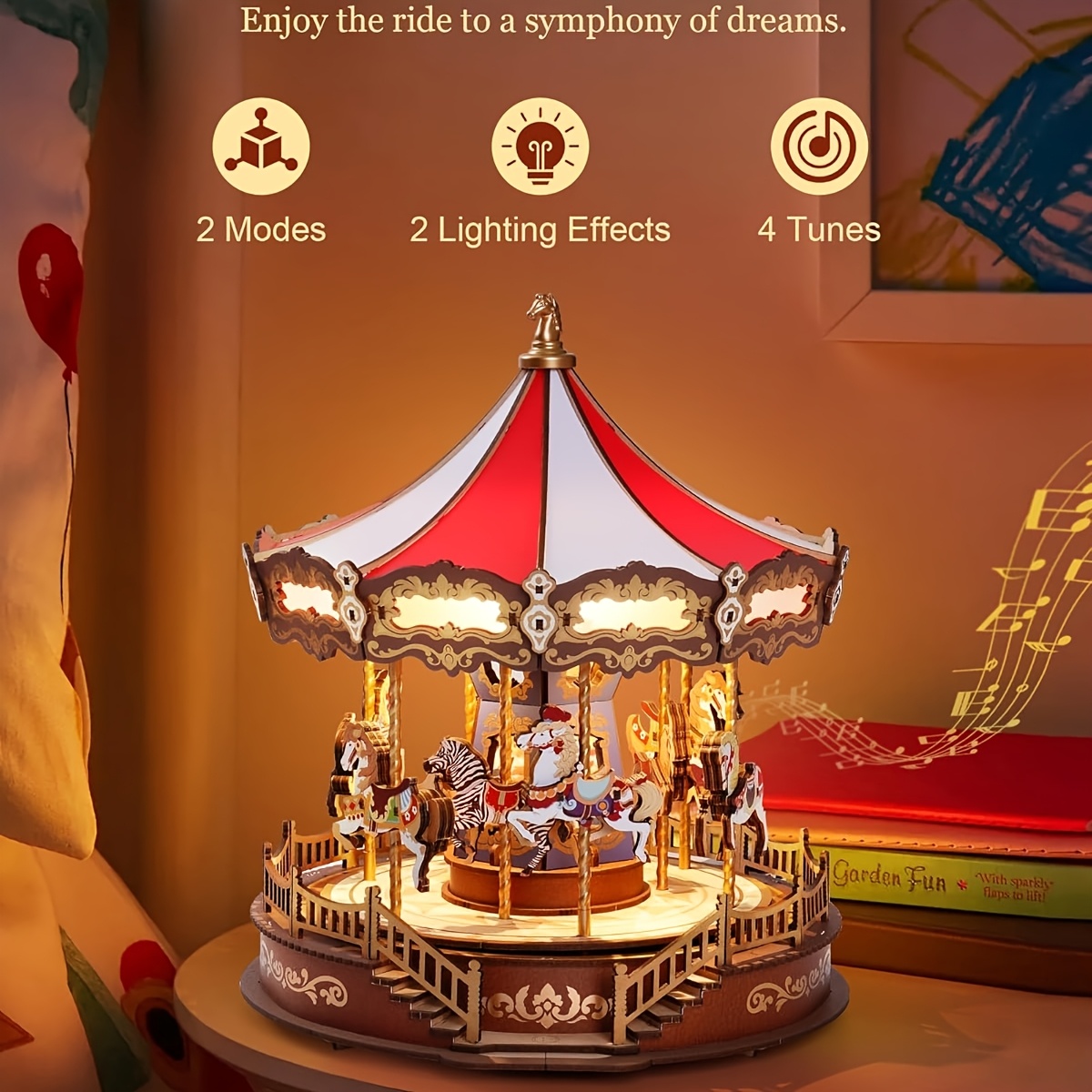 Modle kitsRolife DIY 3D Wooden Puzzle Rolife DIY 3D Wooden Puzzle Carousel Music Box Model Making Kit – Architectural Project Craft Kit, Hobby Home Decoration Valentine’s Day Gift, Best for Christmas, Perfect for Thanksgiving