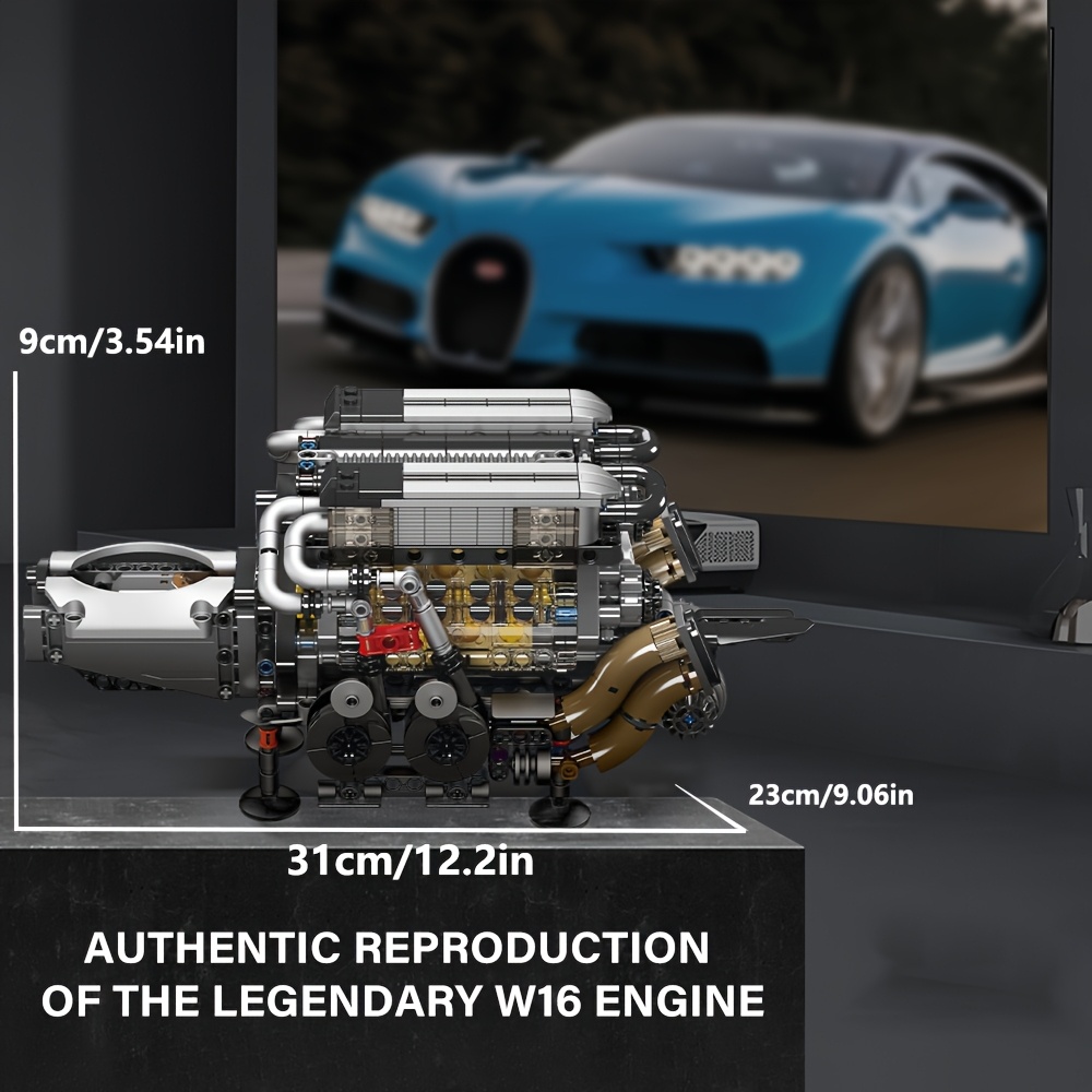 Modle kitsSuper Car Engine Model 952pcs W16 Super Car Engine Scaled Assembly Model Kit | Working Engine Model with Moveable Gears and Pistons, Sport Car Model, Puzzle for Adults, Home Halloween Decor, Birthdayu002FHolidayu002FHalloween Gift